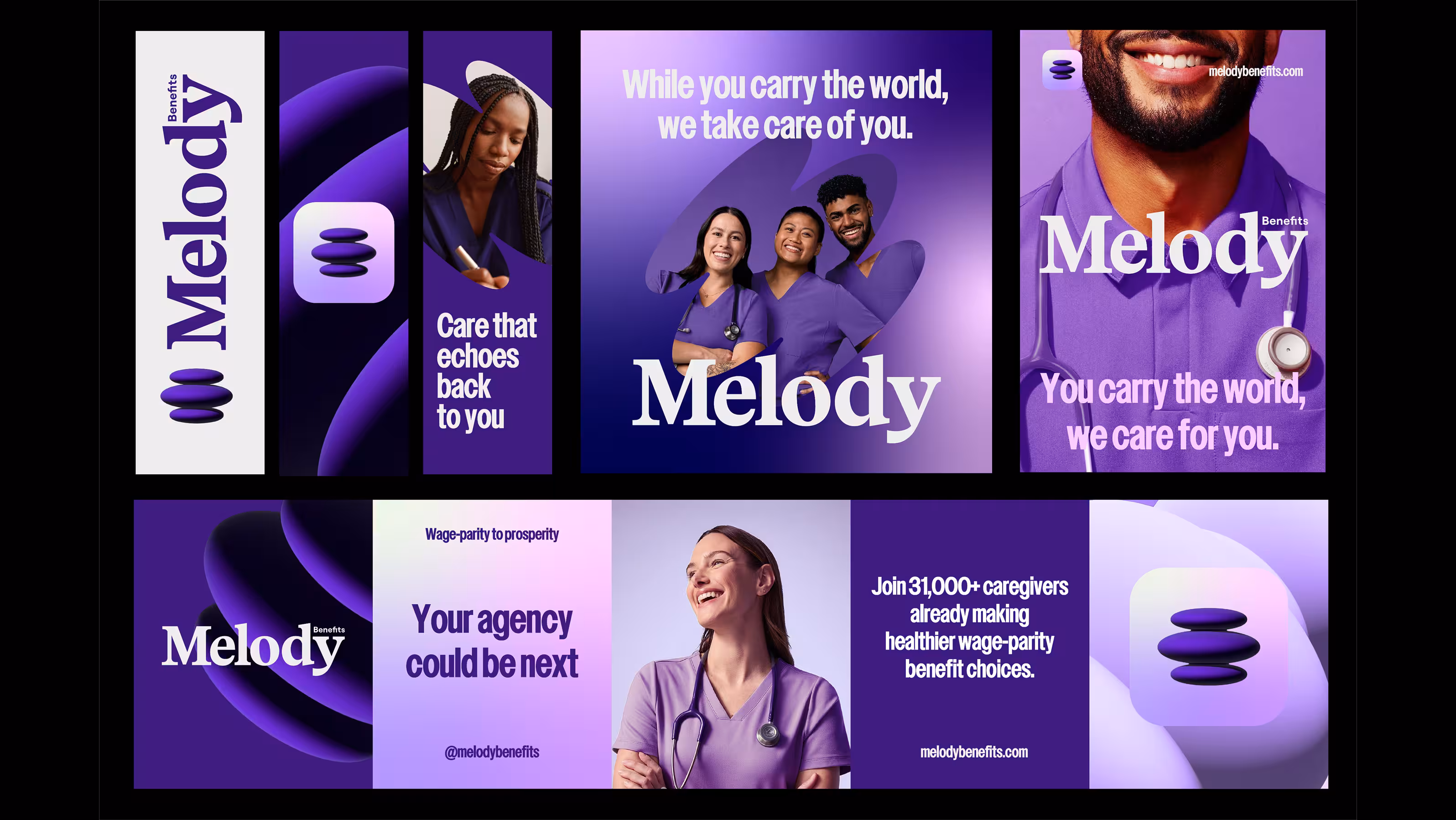 Agencies needed clarity and confidence. Caregivers needed belonging and pride. Melody’s brand had to bridge those needs with one clear message: care deserves care.