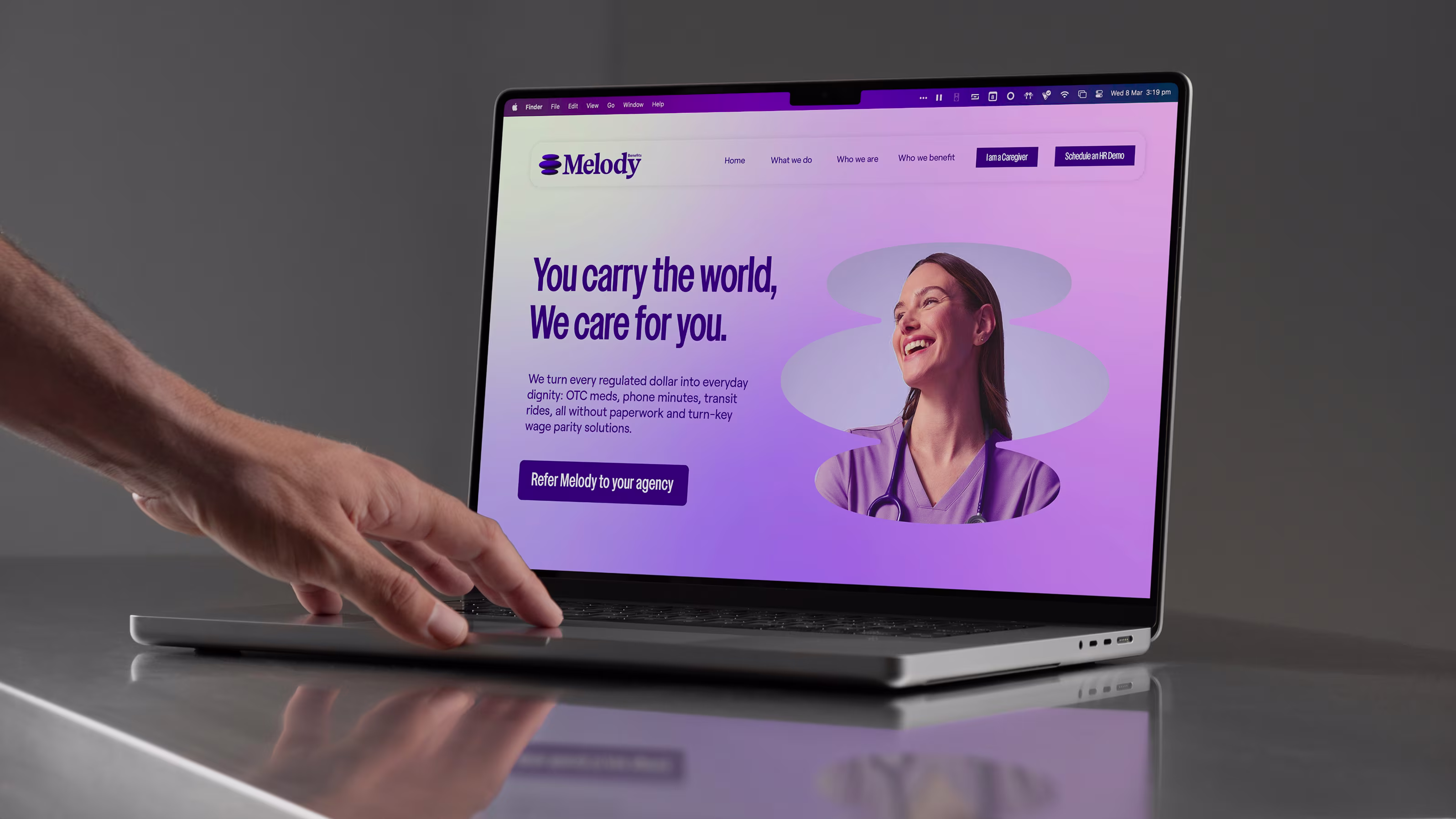 Melody sits at the crossroads of caregiving and innovation, a benefit platform built for those who give care, and those who make it possible. The brand serves two audiences whose worlds are deeply intertwined: caregivers who carry the weight of daily life for others, and agencies tasked with navigating a maze of regulations, wage-parity mandates, and retention challenges.